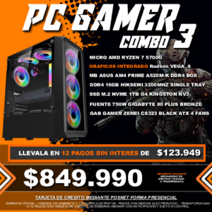 COMBO 3 PC GAMER RYZEN 7 5700G + PERFORMANCE