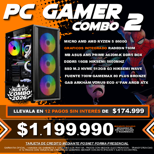 Un combo muy equilibrado, ideal para gamers casuales y usuarios exigentes que buscan fluidez. Cuenta con los necesario para agregarle una placa de video a futuro.