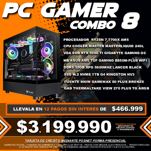 COMBO 8 PC GAMER RYZEN 7 7700X + VGA 5060 TI